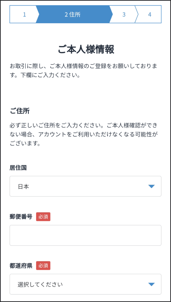居住国は「日本」を指定。そのほかの住居情報を入力して「次へ」ボタンをタップします。