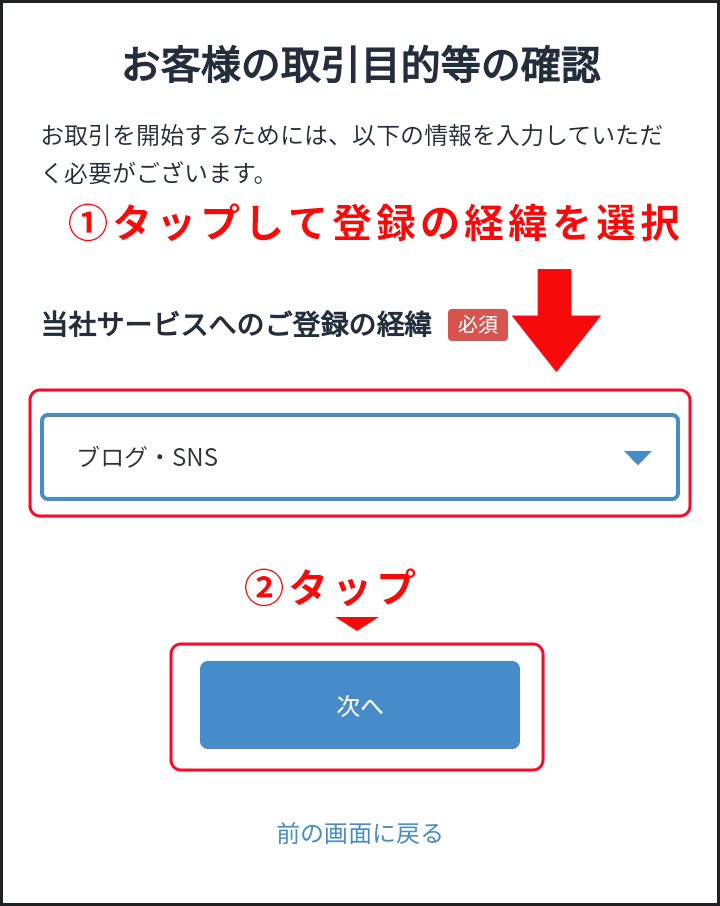 - STEP3お客様の取引目的の確認