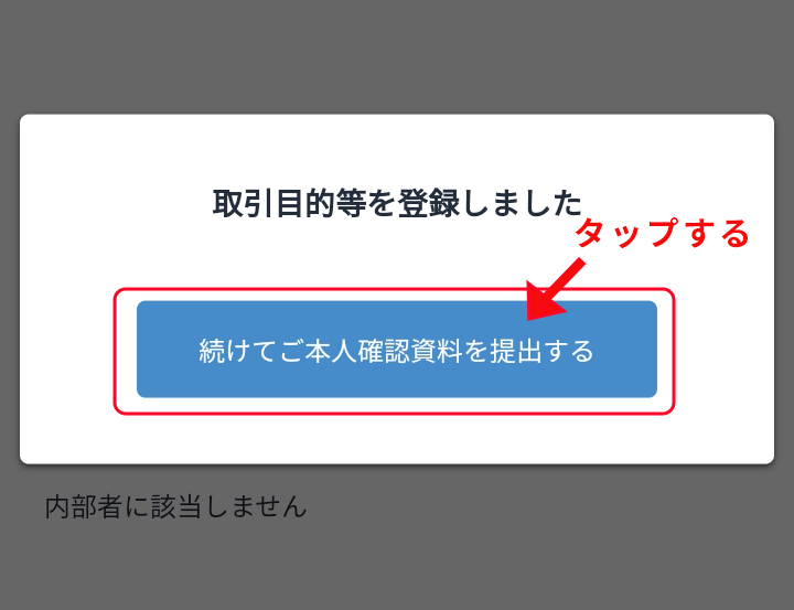 「続けてご本人確認資料を提出」をタップしましょう。