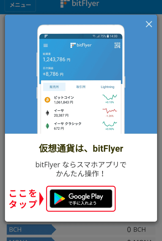 bitFlyerのアプリが表示されたらインストールします。