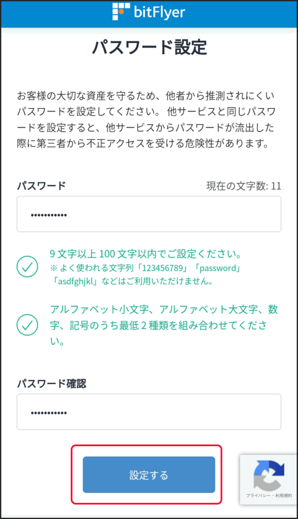 任意のパスワードを入力して「設定する」ボタンをクリックします。