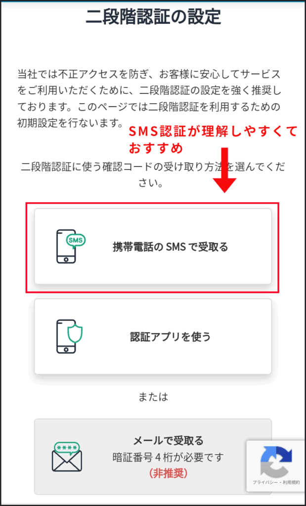 2段階認証は、パスワードのようにユーザーを認識するための認証手段です。認証アプリを使ったことがない方は、SMS認証がおすすめです。