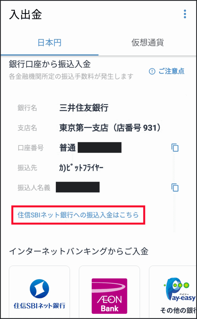 上記の中でも、住信SBIネット銀行を使ってインターネットバンキングから日本円を入金すると、手数料が無料になります。