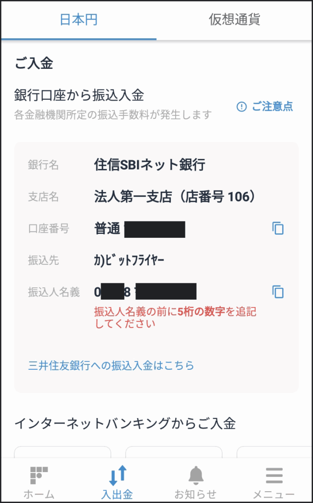 【手数料0円】ビットフライヤーの口座に日本円を入金する手順
