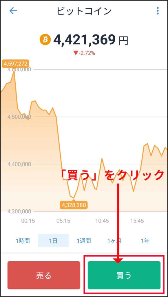 - STEP2チャート画面の下にある「買う」ボタンをタップ
