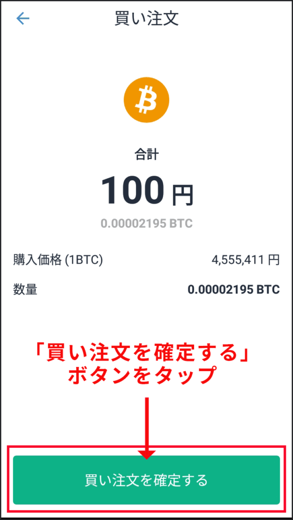 - STEP4購入額を確認して「買い注文を確定する」ボタンをタップ